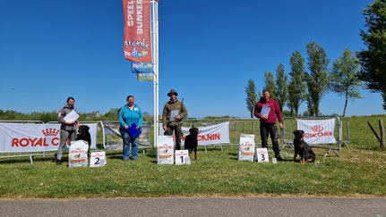 Urs startete mit Ayco und Aerya in der Klasse 3, genau so wie ich mit Dolce. Mein Jungspund Baceo und Hook von Patrizia starteten in der Klasse 1. Allerdings nicht gemeinsam. Während ich mit Baceo am Freitag in der Klasse 1 antrat, starteten Patrizia und Hook am Sonntag in der Klasse 1. Alle erzielten hervorragende Ergebnisse und da es Baceos fünftes „sg“ war, musste er in die Klasse 2 aufsteigen. Somit war die Schweiz auch in der Klasse 2 vertreten.